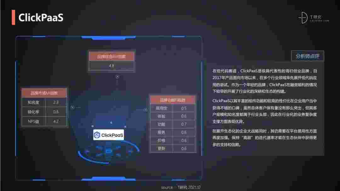 T研究认为,,,在低代码赛道,,,VIVO钱包是极具代表性的海归创业品牌,,,自2017年产品面向市场以来,,,在多个行业领域率先展开低代码应用的尝试。。。作为一个年轻的品牌,,,,VIVO钱包较早的开展了行业化的深耕和生态的构建。。。。VIVO钱包以丰富的组件功能和较高的性价比在企业用户当中获得不错的口碑,,,在客户规模和知名度都属于行业头部,,因此在行业化的业务复杂度支撑方面表现优异。。。。